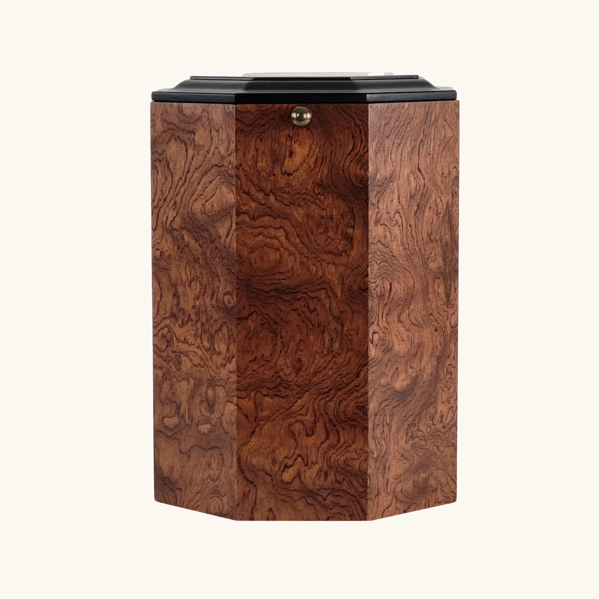 ONECOF offers urns in various designs that combine aesthetics and functionality, suitable for different environments – cemeteries, columbaria, or home storage. The materials used include recycled wood, solid wood, high-quality wood imitation materials, and natural wood in various tones. Rectangular, octagonal, and profiled urns stand out with their elegant design, durability, and especially secure lids, ensuring the safe and dignified preservation of the memory of the departed.